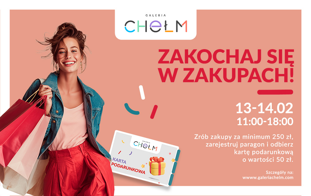 W tych dniach klienci, którzy zrobią zakupy za minimum 250 zł i zarejestrują paragon na stoisku promocyjnym u hostess, otrzymają kartę podarunkową Galerii Chełm o wartości 50 zł.
